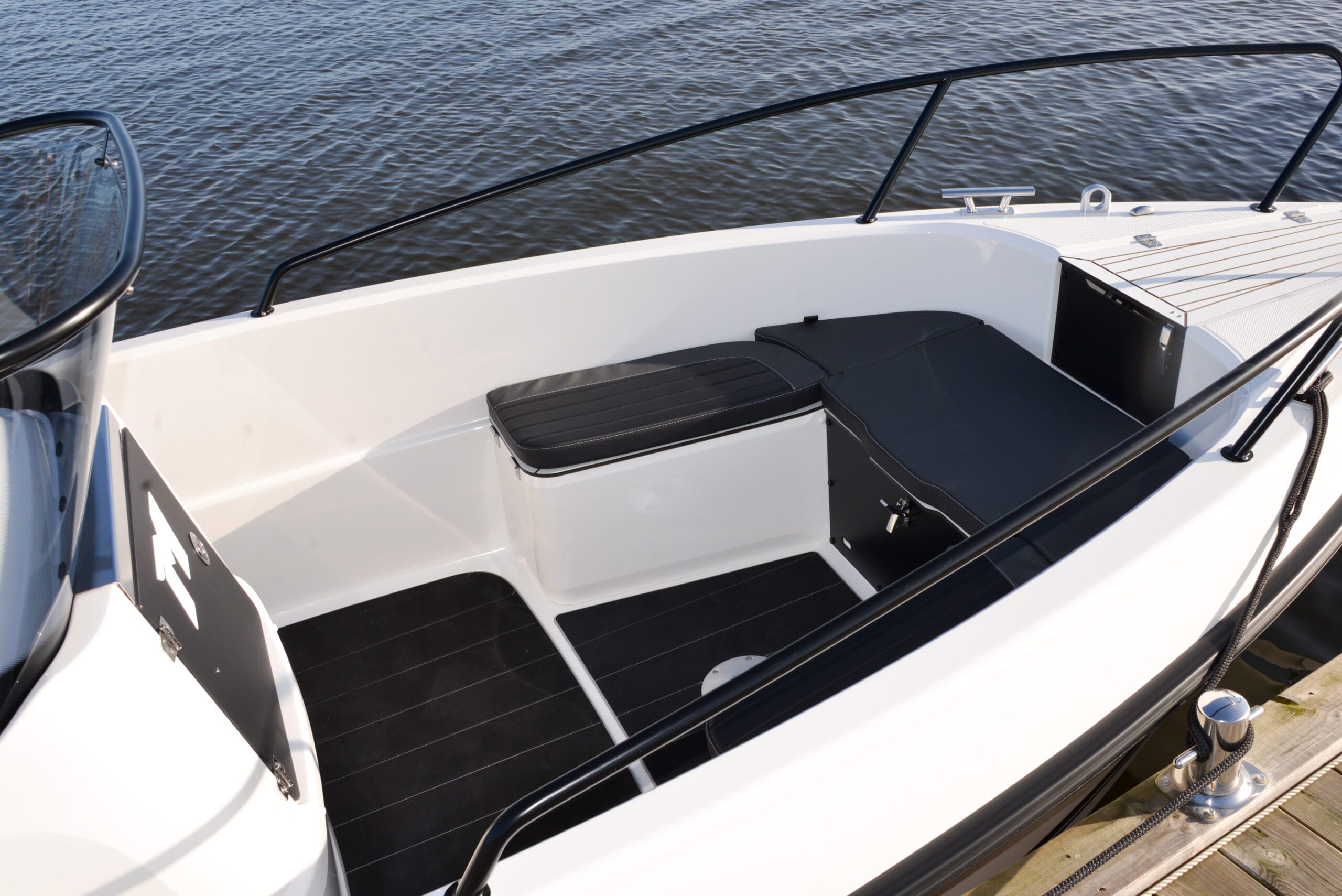 Opplev sjølivet med denne 5-metersbåten som har sentrert styrekonsoll, perfekt for sports- og fritidsaktiviteter som skjærgårdsturer, fiske og vannsport. Båtmodellen kommer også i en unik R-designutgave som gjør den sporty og med et ordentlig blikkfang.